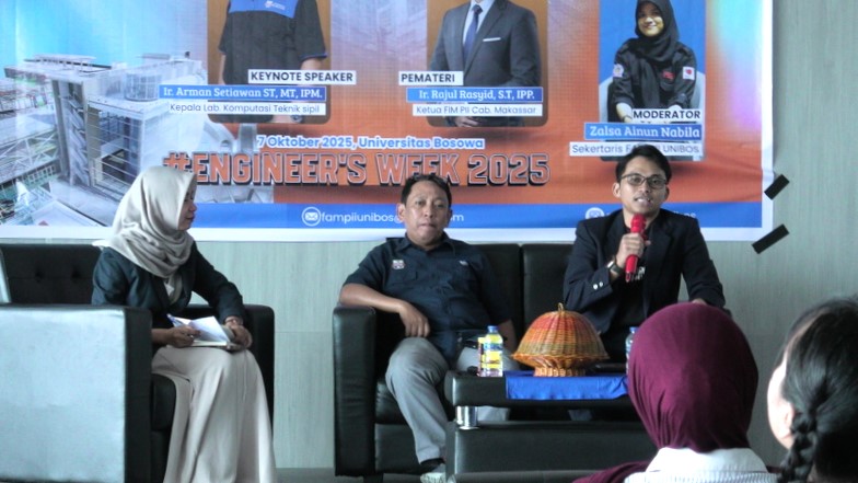 Program Studi Teknik Sipil Fakultas Teknik Universitas Bosowa (Unibos) menyelenggarakan kuliah umum bertajuk “Masa Depan Konstruksi Indonesia: Pemanfaatan BIM dan Teknologi Digital” pada Selasa, 7 Oktober 2025, di Aula Teknik lantai 5 Gedung II Unibos. Kegiatan ini menjadi salah satu upaya fakultas dalam memperluas wawasan mahasiswa terhadap perkembangan teknologi konstruksi modern yang kini menjadi arah masa depan industri teknik sipil di Indonesia.