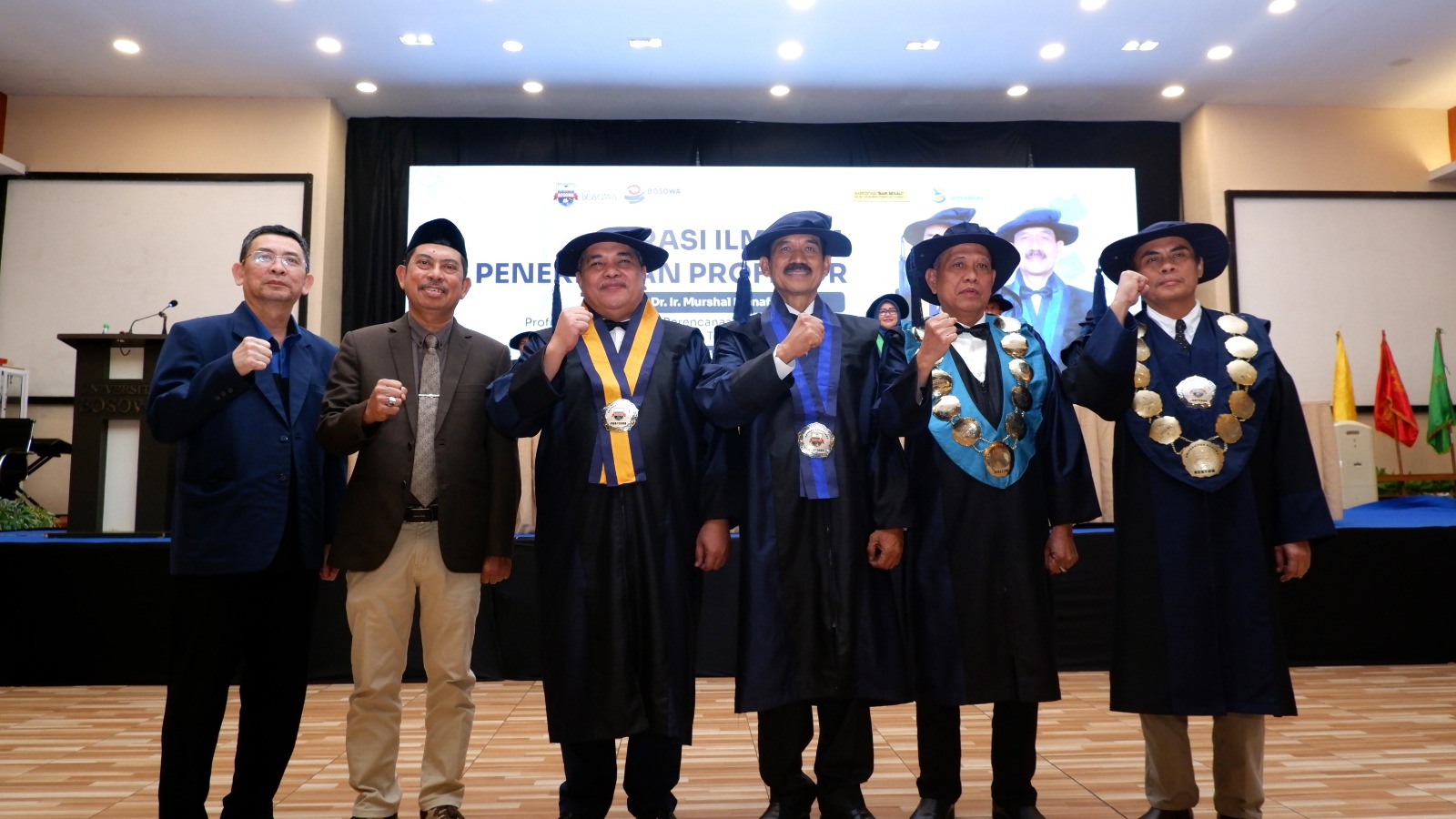 Universitas Bosowa (Unibos) kembali mencatatkan prestasi membanggakan dengan mengukuhkan dua guru besar baru melalui Sidang Terbuka Senat yang digelar pada Rabu, 8 Oktober 2025 di Balai Sidang Unibos. Dalam acara yang penuh khidmat tersebut, Prof. Dr. Ir. Murshal Manaf, S.T., M.T. dikukuhkan sebagai Profesor dalam bidang Perencanaan Wilayah dan Kota dengan kepakaran Moda Transportasi Perkotaan, sementara Prof. Dr. Thamrin Abduh, S.E., M.Si. resmi menyandang gelar Profesor dalam bidang Ekonomi Pembangunan dengan kepakaran Kinerja Ekspor UMKM dan Industri Kreatif.